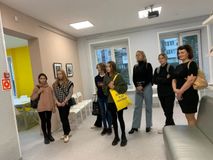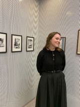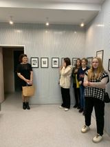 На выставке представлены работы трех молодых художников, один из которых наш преподаватель Мария Михайловна Агафонова. На открытии выставки Мария Михайловна была со своими учениками