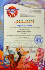 Первая звездочка - Вера Скачкова - в номинации "Инструментальное исполнительство, соло (гитара)" стала Лауреатом 2 степени