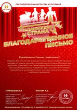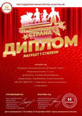 Детский хор (возрастная категория 11-13 лет) - руководитель Наталья Юрьевна Копалина, концертмейстер Татьяна Анатольевна Коробейникова с песней В. Гаврилина "Мама" стал ЛАУРЕАТОМ I степени международного конкурса-фестиваля "Талантливая страна", реализованного при поддержке Министерства культуры РФ. Поздравляем ребят с высоким результатом и ждем ярких выступлений! Благодарим Наталью Юрьевну и Татьяну Анатольевну за профессионализм и большой труд, за подготовку и развитие наших юных талантов!
