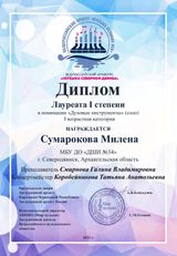 Поздравляем юных музыкантов с высоким результатом и желаем новых встреч с музыкой, творческого вдохновения и новых успехов! Благодарим преподавателей Татьяну Анатольевну Коробейникову, Галину Владимировну Смирнову и концертмейстера Софью Николаевну Усову за высокий профессионализм, развитие талантливых музыкантов, веру и поддержку учеников! Новых интересных встреч с музыкой!