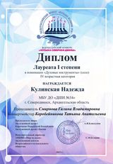 Кулинская Надежда - Лауреат I степени (IV возрастная категория)