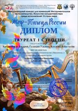 Международный конкурс "Жар-Птица России" для номинаций "Инструментальное исполнительство, концертмейстерское мастерство" состоялся в конце марта (г. Москва)