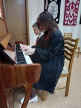 И как же нам повезло! Мы не только познакомились с уникальными северодвинскими мастерицами, их творчеством, но и подарили зрителям и посетителям выставки музыкальные номера