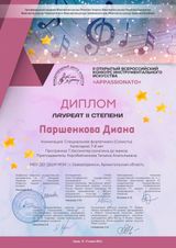 II Открытый всероссийский конкурс инструментального искусства "Appassionato" принес победу Диане Паршенковой - она стала Лауреатом II степени