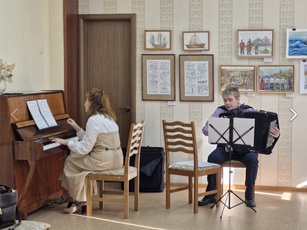 Преподаватели Дмитрий Сергеевич Окулов и Александра Константиновна Маканина стали настоящими проводниками в это морское путешествие! В их исполнении прозвучала замечательная авторская пьеса Дмитрия Окулова "Прогулка по побережью Белого моря" и "Танго" Астора Пьяцоллы. Браво!!!